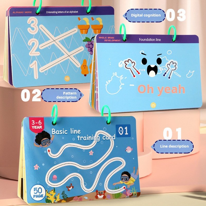 【 Package 1 】 Level 1 Basic Line Training Card with 52 erasable white cardboards and a complimentary 10 piece gift pack