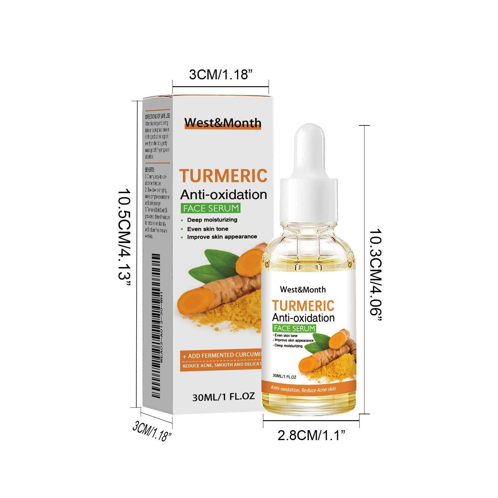 WestMonth Turmeric essence serum. It fades acne marks, brightens skin tone, hydrates the face and serves as a moisturizing facial essential oil.